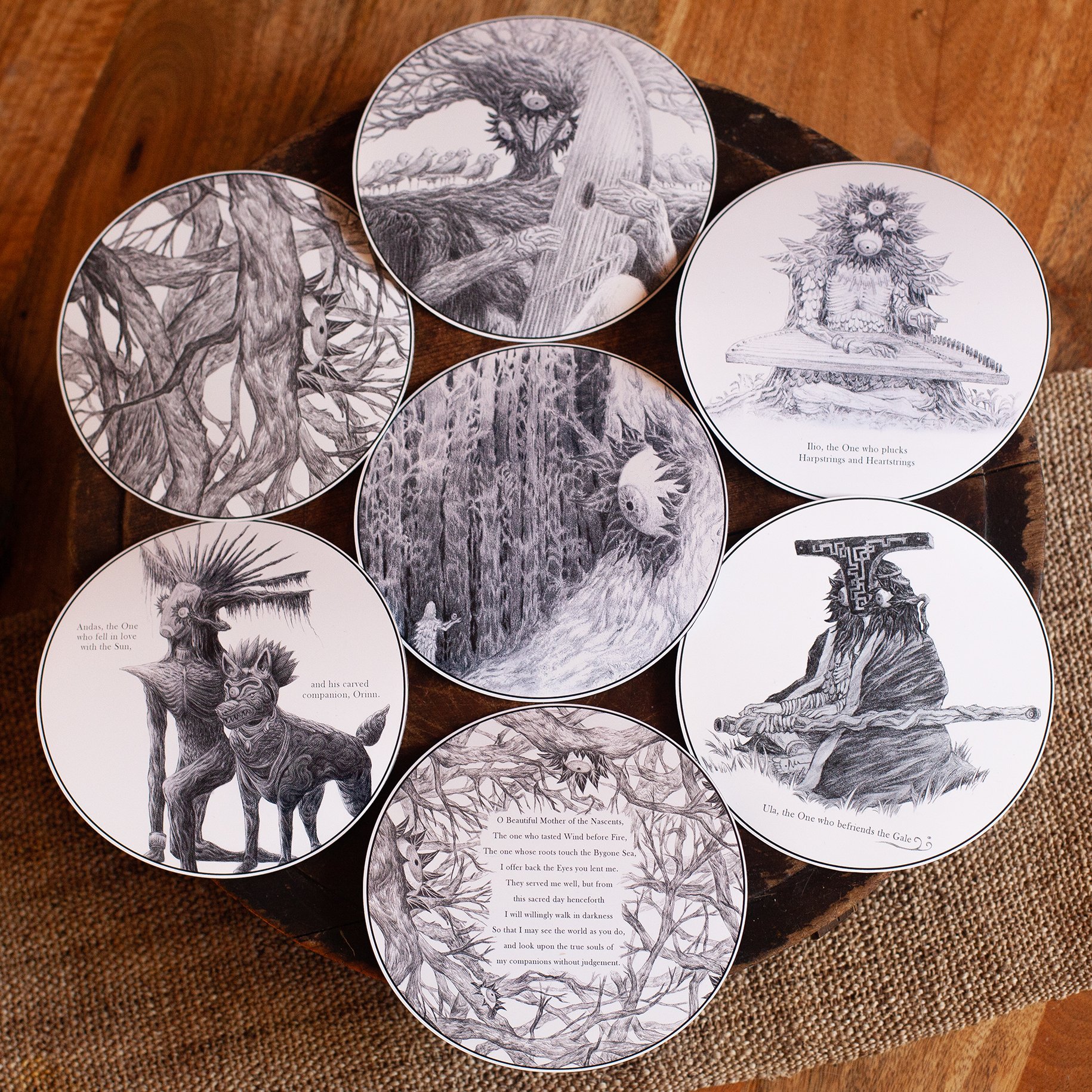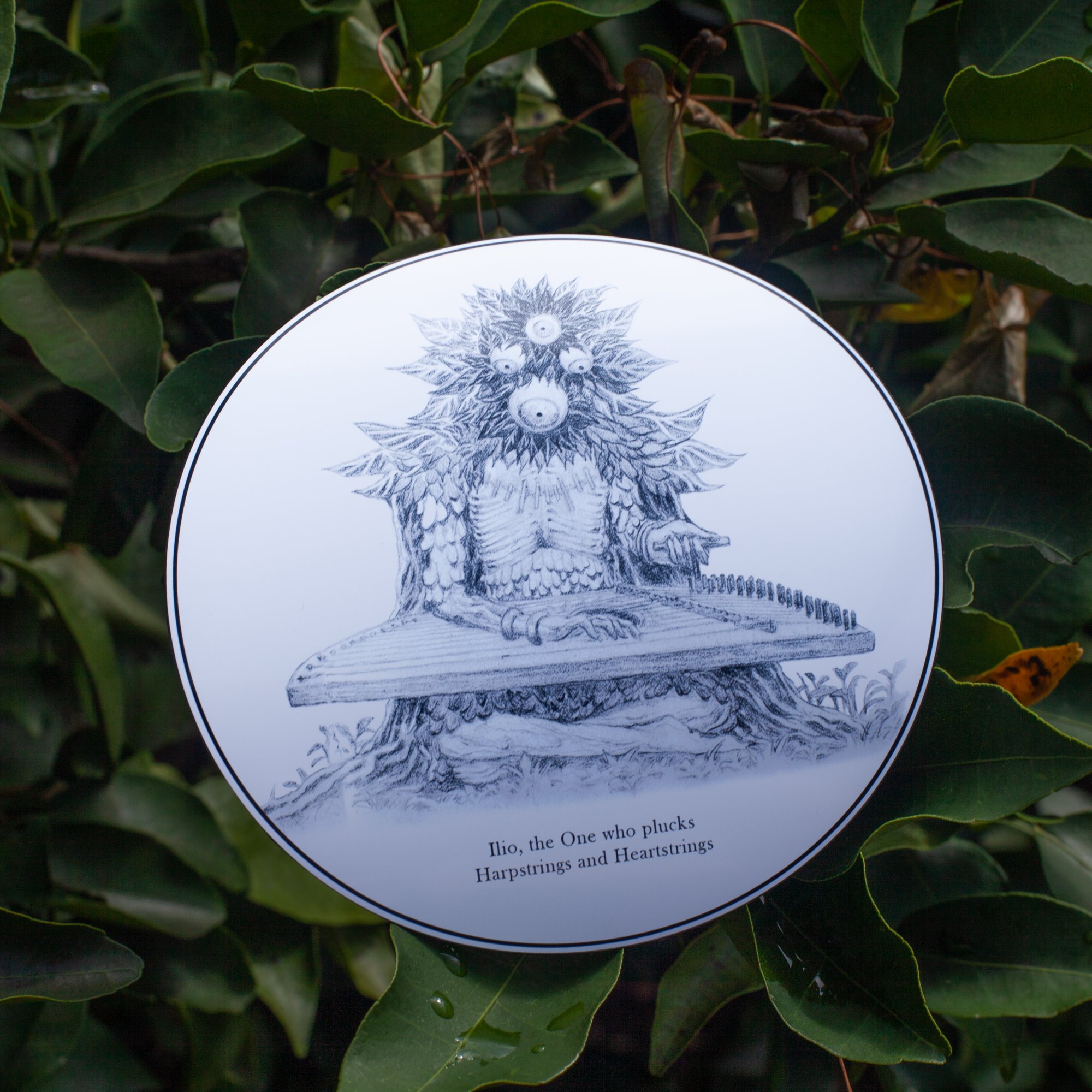 Single sticker print of a pencil illustration from 'Sight of the Nascents', a personal project depicting the Forest of Sight and its inhabitants.